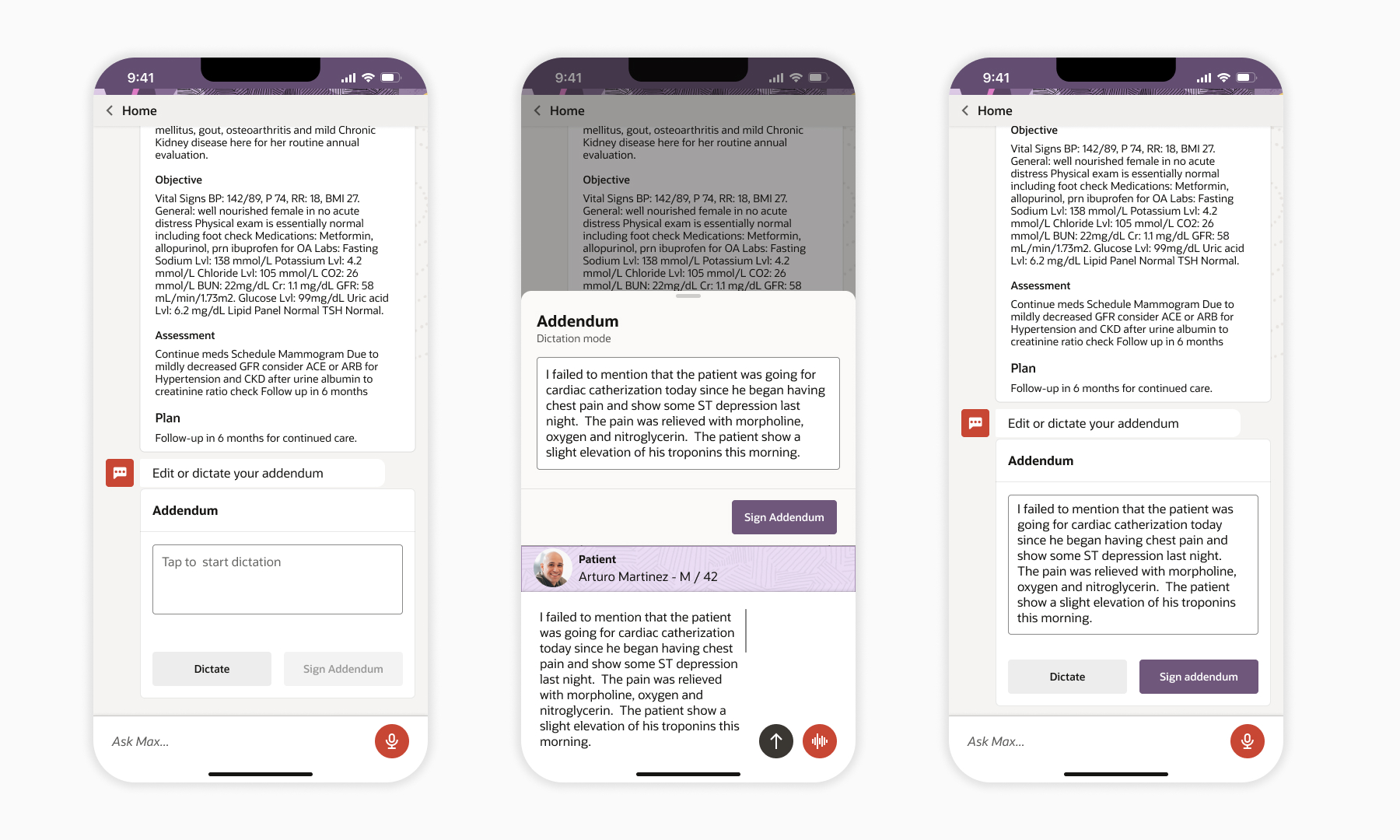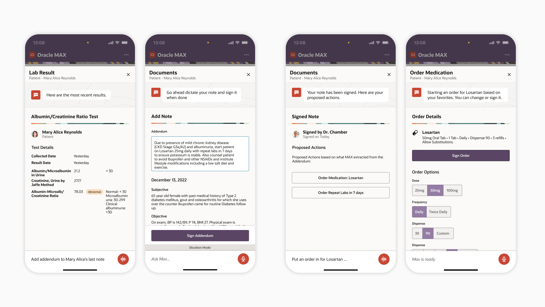 I led the design of MAX, an innovative AI-powered clinical digital assistant for healthcare professionals. MAX seamlessly integrates with electronic health record systems, reducing cognitive burdens by streamlining workflows and providing real-time recommendations. As the Principal UX designer, I crafted a user-friendly experience across platforms, utilizing Oracle's Redwood Design System for consistency.